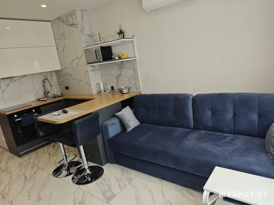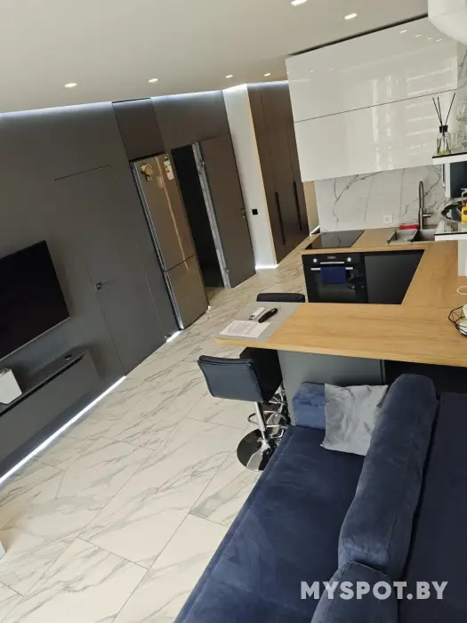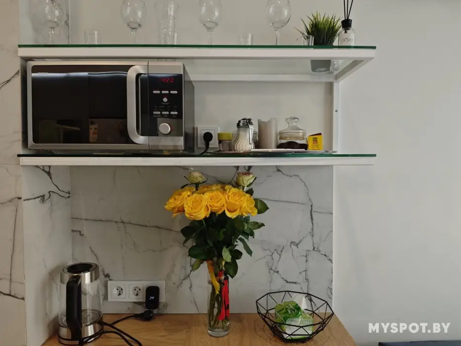 Для наших гостей есть: smart TV, кондиционер, Wi-Fi, встроенный холодильник, индукционная плита, духовой шкаф с СВЧ, посудомоечная машина, чайник, Алиса с голосовым управлением TV и света, установлен фильтр очистки питьевой воды.